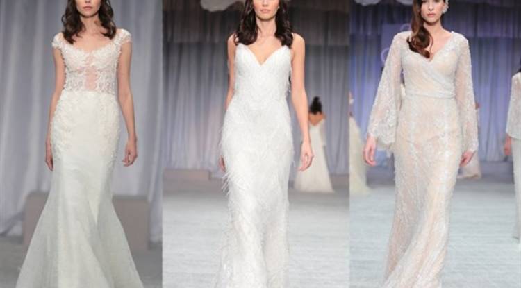 Abartısız şıklığın ön planda olduğu tasarımlarda, gelinlikler bolca detayla süslenmişti.